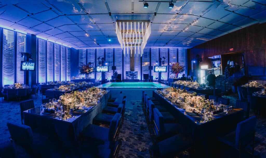 Event Fab had the privilege of designing and installing a breathtaking custom LED chandelier inside The Grill, one of New York City’s most iconic and architecturally rich venues. This project blended modern innovation with classic luxury, creating a striking visual centerpiece that elevated the entire event atmosphere.