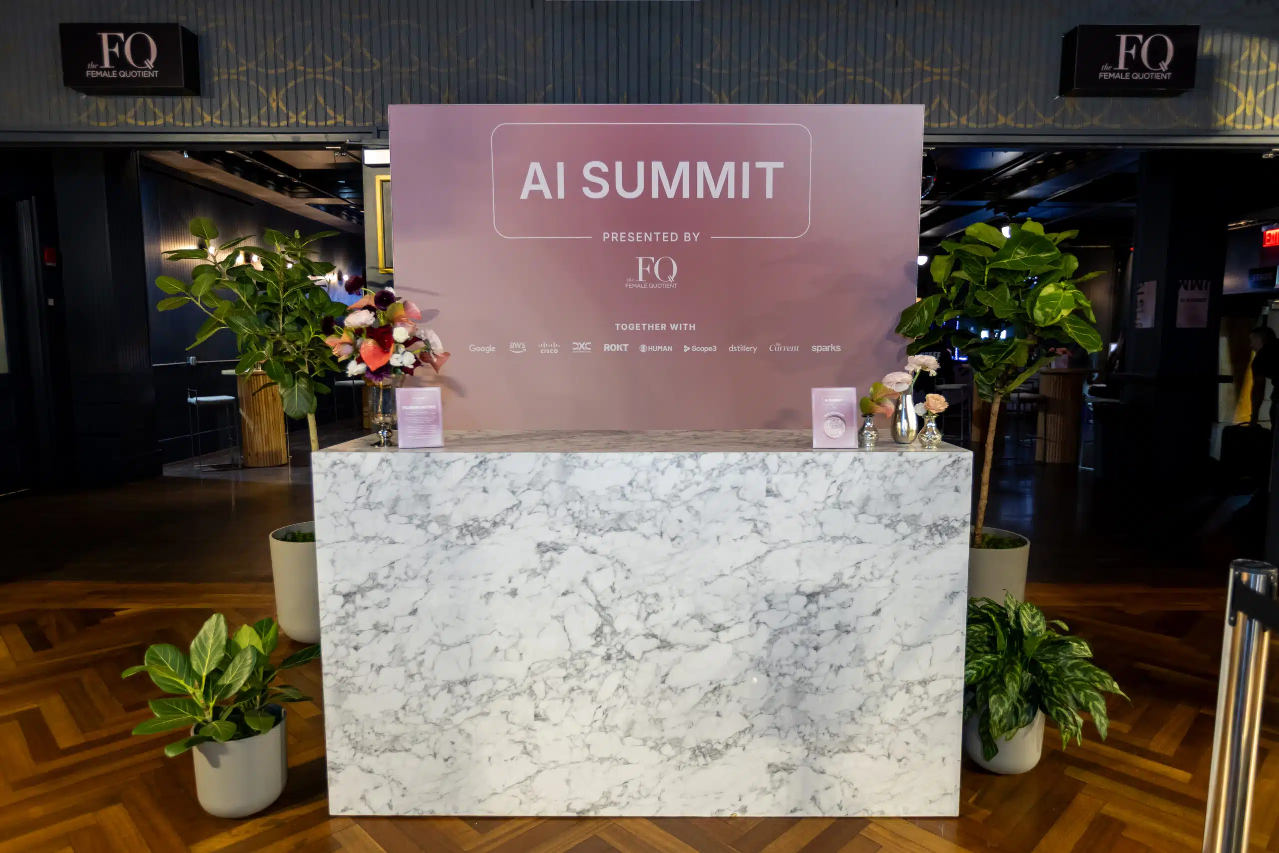 Event Fab partnered with The Female Quotient to execute a complete venue branding transformation for their AI Summit at Webster Hall in New York City. With all artwork, design direction, and visual assets provided by the FQ team, our job was to bring their creative vision to life through expert production, printing, installation, and full-scale environmental branding.