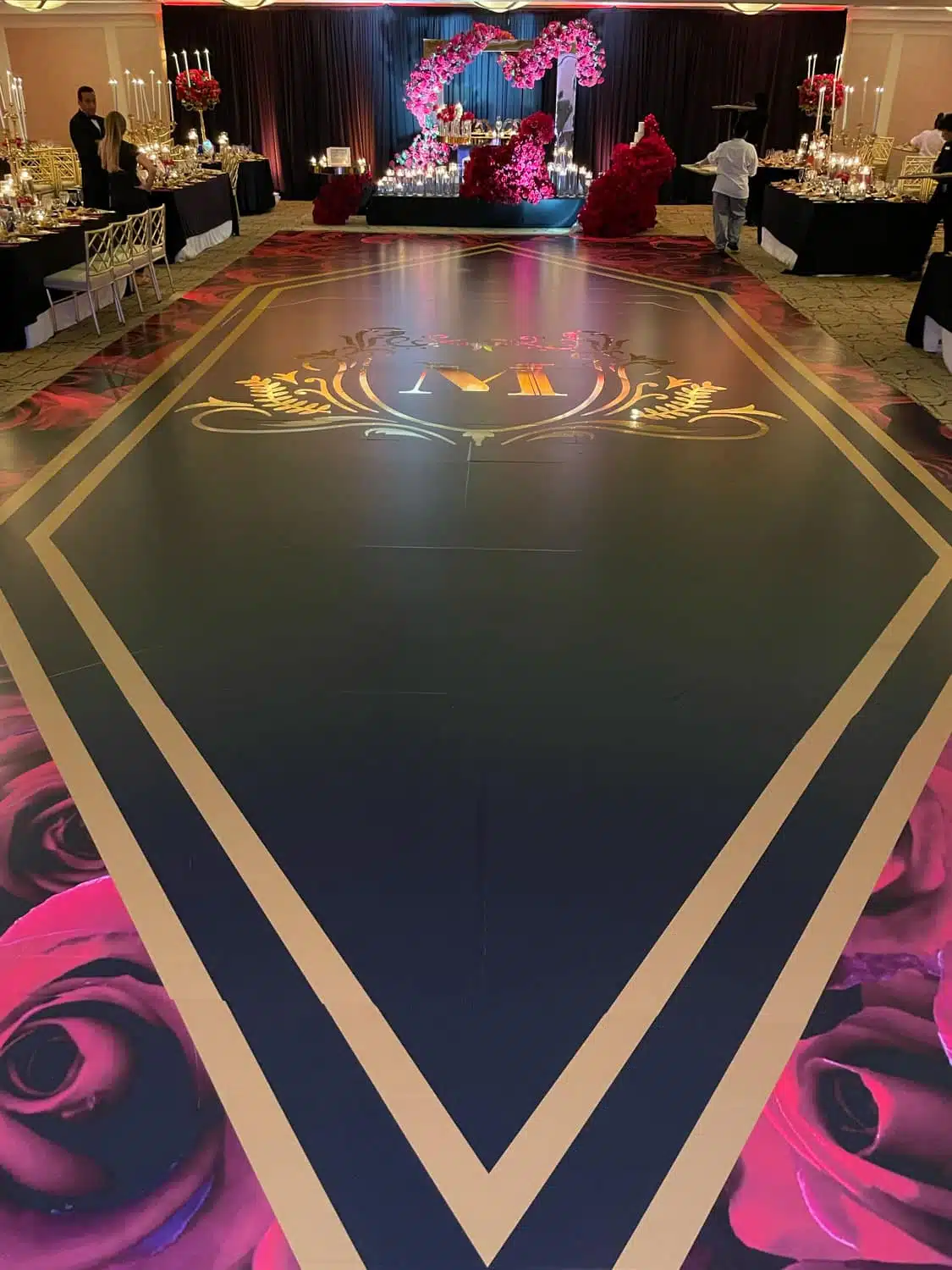 We specialize in custom metallic monograms and die-cut decals that add an elegant or modern touch to your dance floor. These elements can highlight names, initials, or corporate branding for maximum impact.