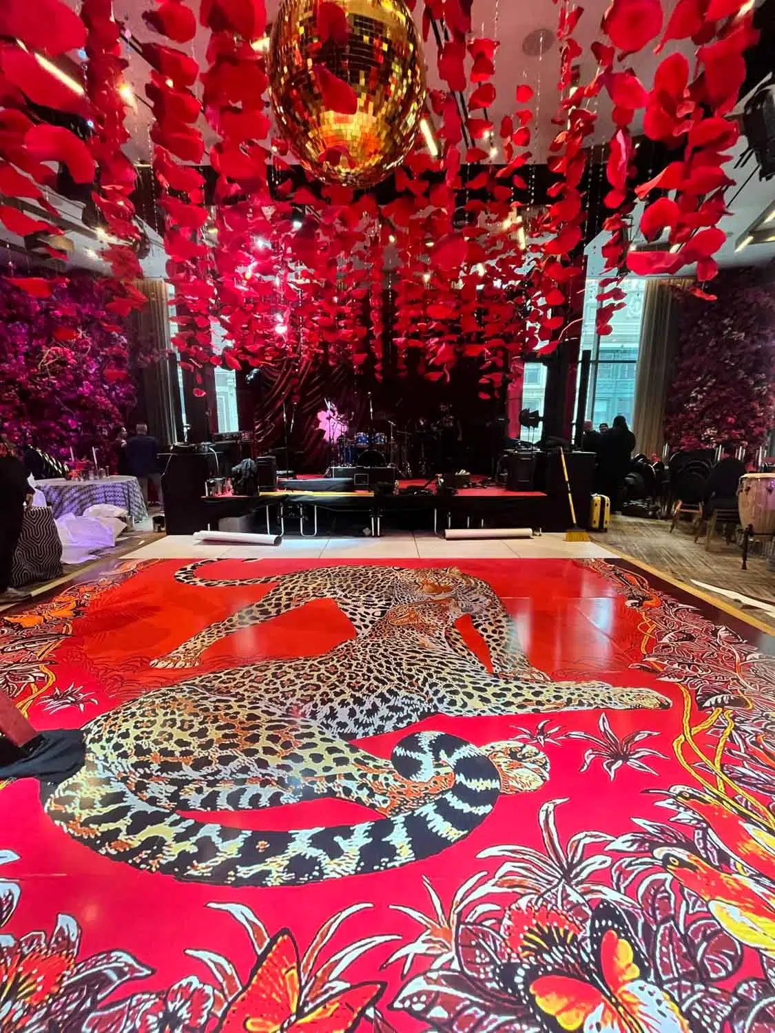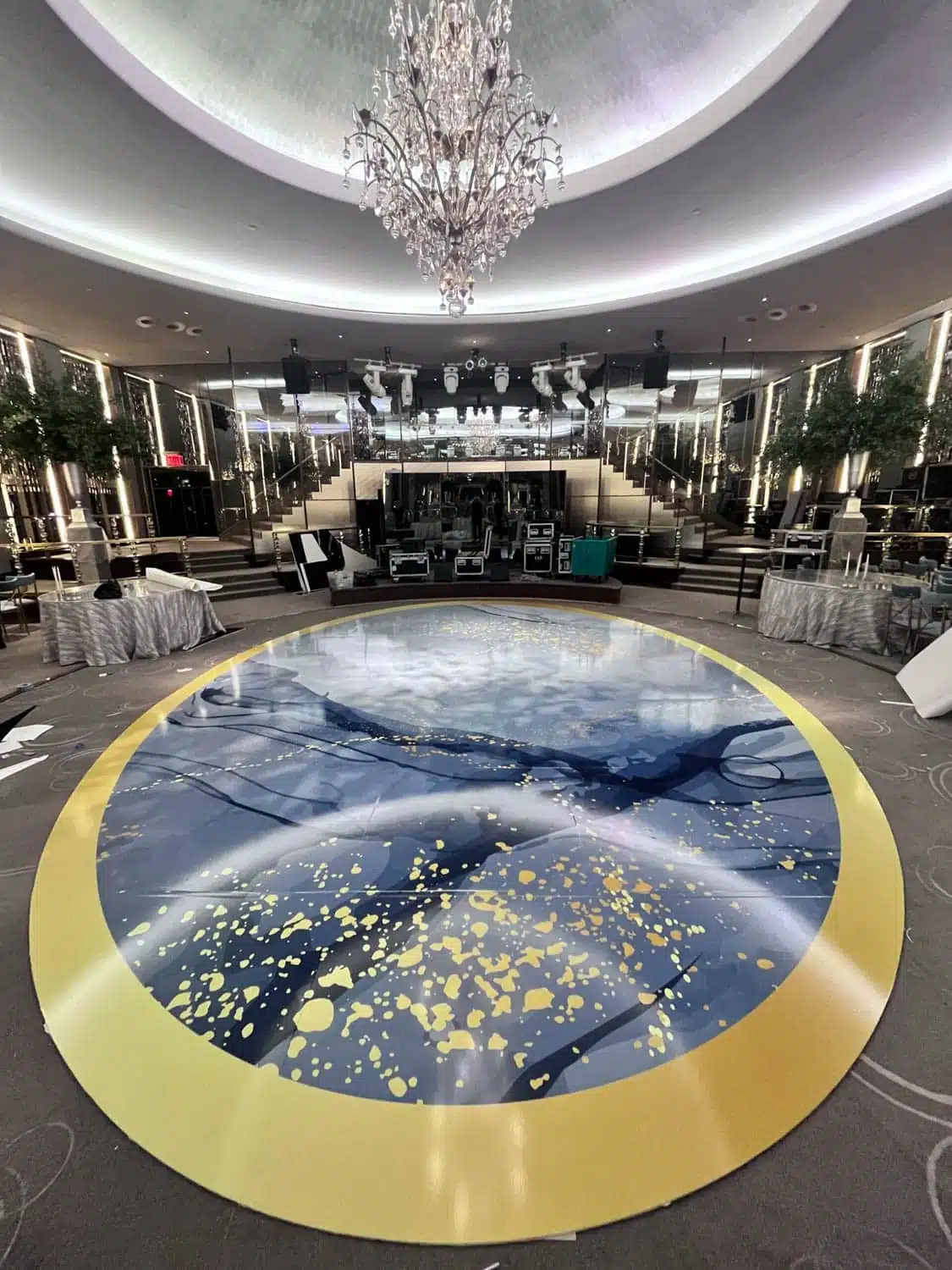 Our dance floor wraps use removable adhesives designed to protect underlying surfaces. With proper installation and removal by our team, there’s minimal risk of residue or damage.