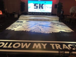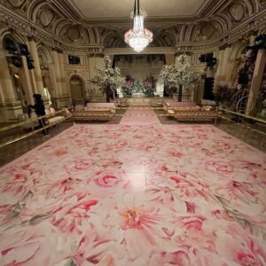 Dance floor vinyl wraps are fully customizable graphics that transform plain floors into memorable focal points. Whether for weddings, corporate events, or private parties, these vinyl wraps add style, branding opportunities, and a cohesive theme.